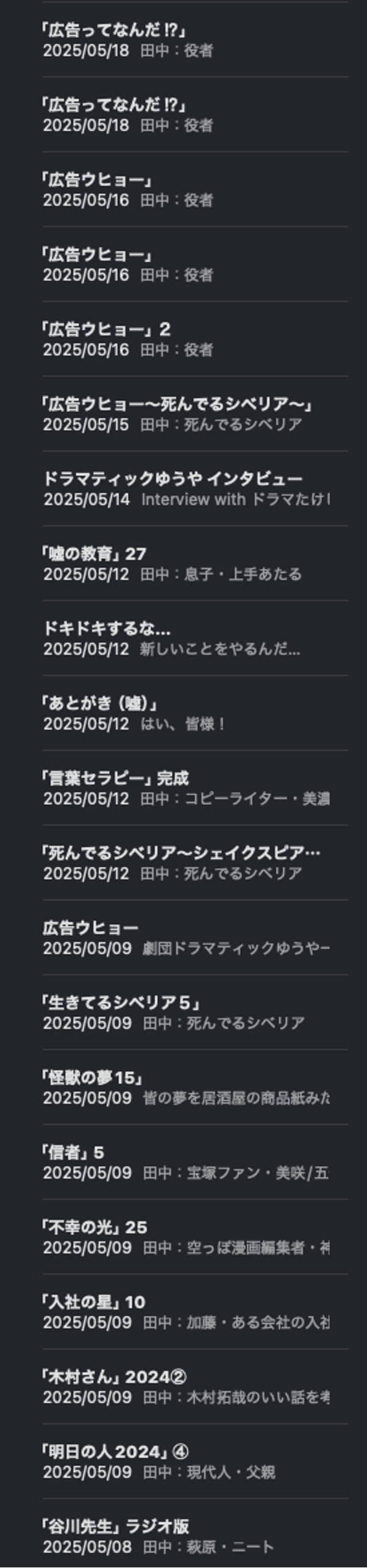 たとえば、昨夜飲みすぎて後輩に言いすぎてしまった…次はもっと良いセリフで言い直したいんですよ。脚本を変えたいんです。だから新セリフ案をぐだぐだ考えてるときがありますね。(いやこの言い方は辛いよな…)(なんか良くある言葉だよなぁ)とか思いながら、より相手が聞いてくれるセリフにしたい。どんどん、精査されて刺せる言い方になっていく感じがするのが楽しい。いや、友達がいないわけではないですよ。そんな言葉たちが舞台のセリフになることもあります。前回公演の「嘘の教育」ではまさに悩んでいる後輩への言葉をセリフにしましたし(笑)。